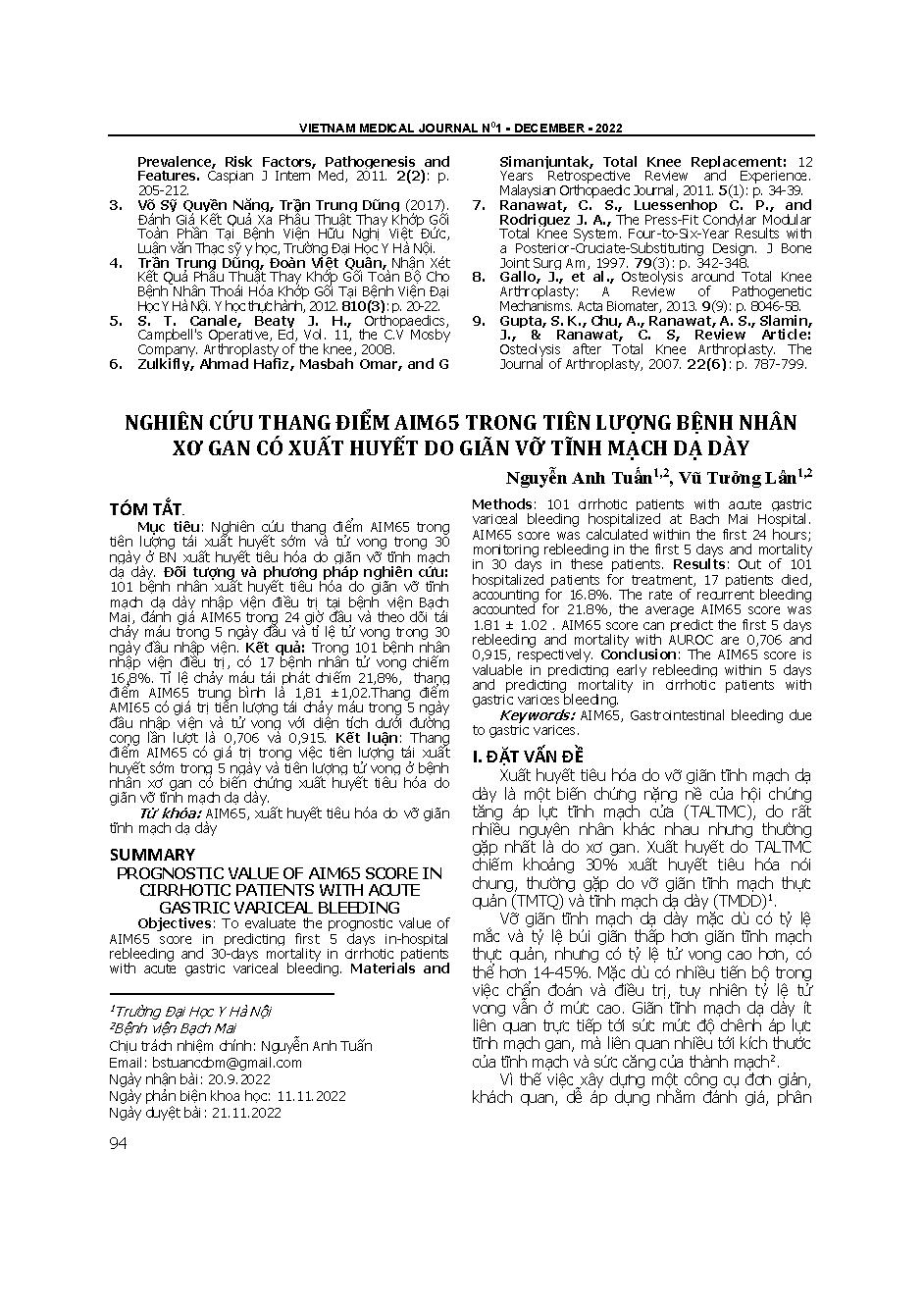 Nghiên cứu thang điểm AIM65 trong tiên lượng bệnh nhân xơ gan có xuất huyết do giãn vỡ tĩnh mạch dạ dày = Prognostic value of AIM65 score in cirrhotic patients with acute gastric variceal bleeding