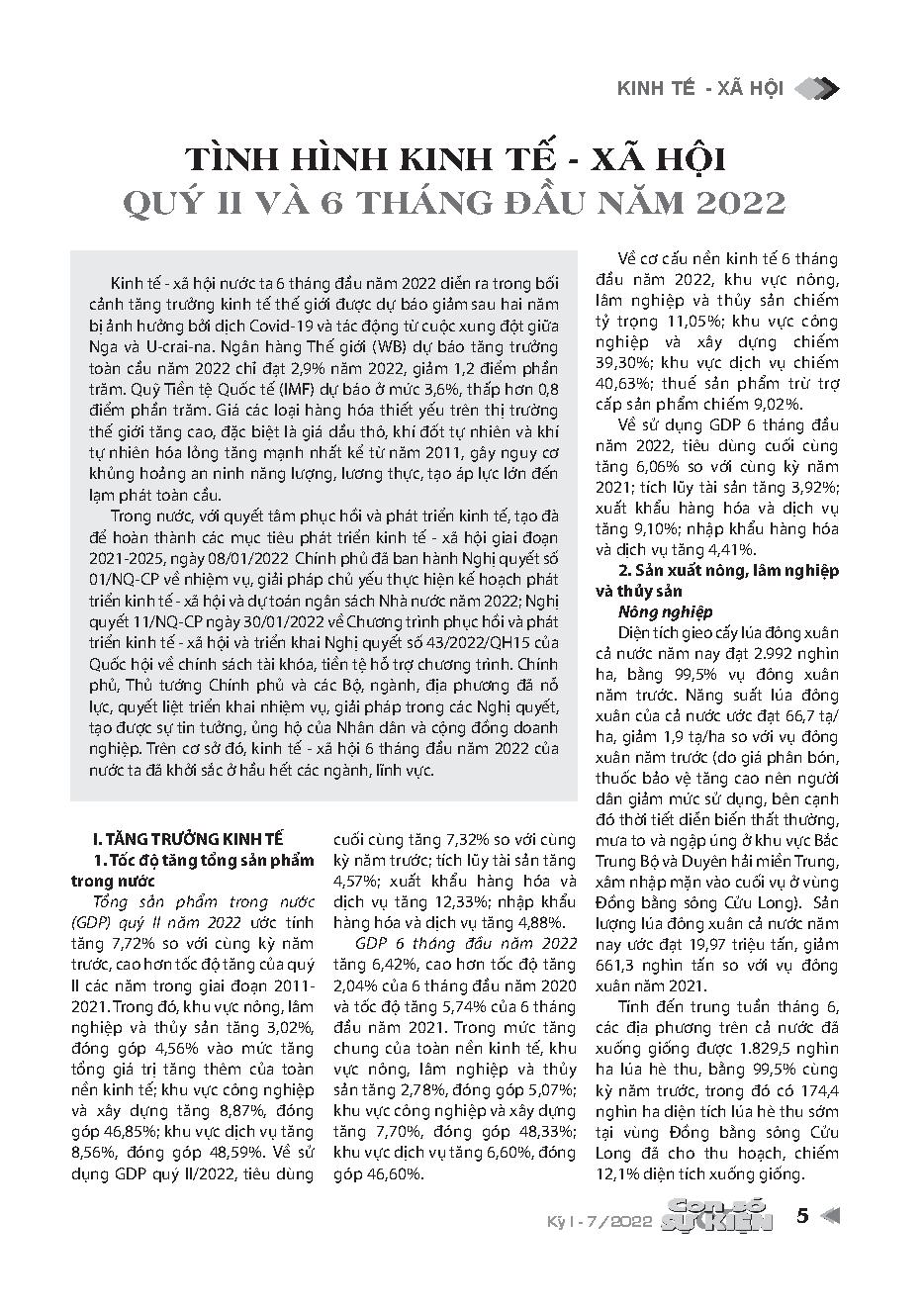 Tình hình kinh tế - xã hội quý II và 6 tháng đầu năm 2022 = Socio-economic situation in the second quarter and first six months of 2022