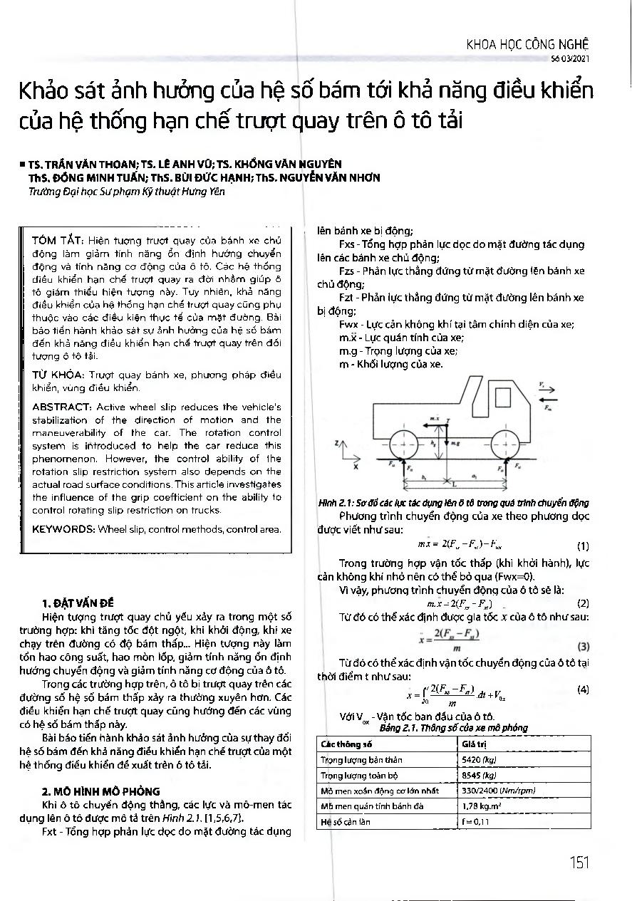 Khảo sát ảnh hưởng của hệ số bám tới khả năng điều khiển của hệ thống hạn chế trượt quay trên ô tô tải = Study on effects of the grip adhesion coefficient on control ability to prevent wheel slipping on trucks