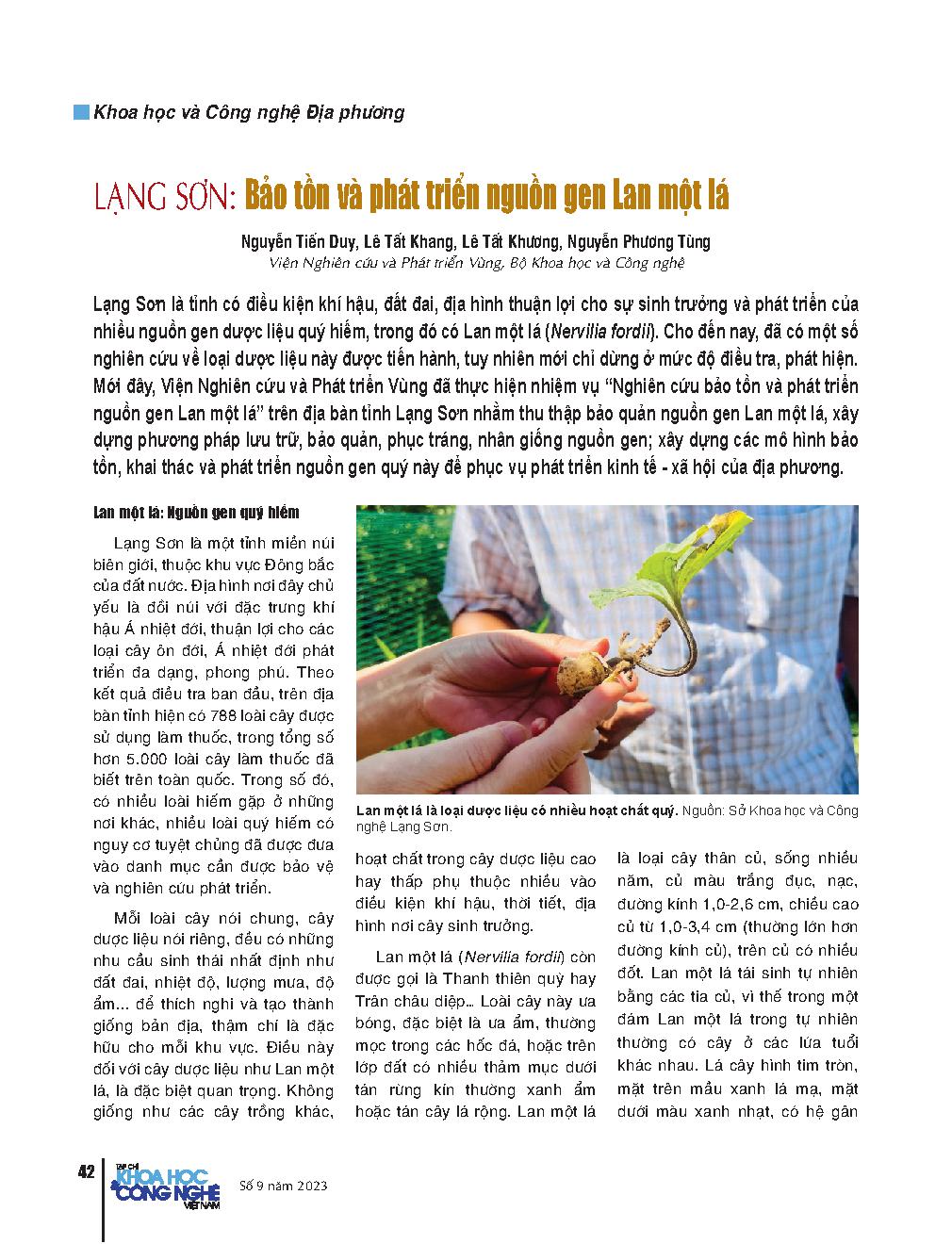 Lạng Sơn: Bảo tồn và phát triển nguồn gen Lan một lá