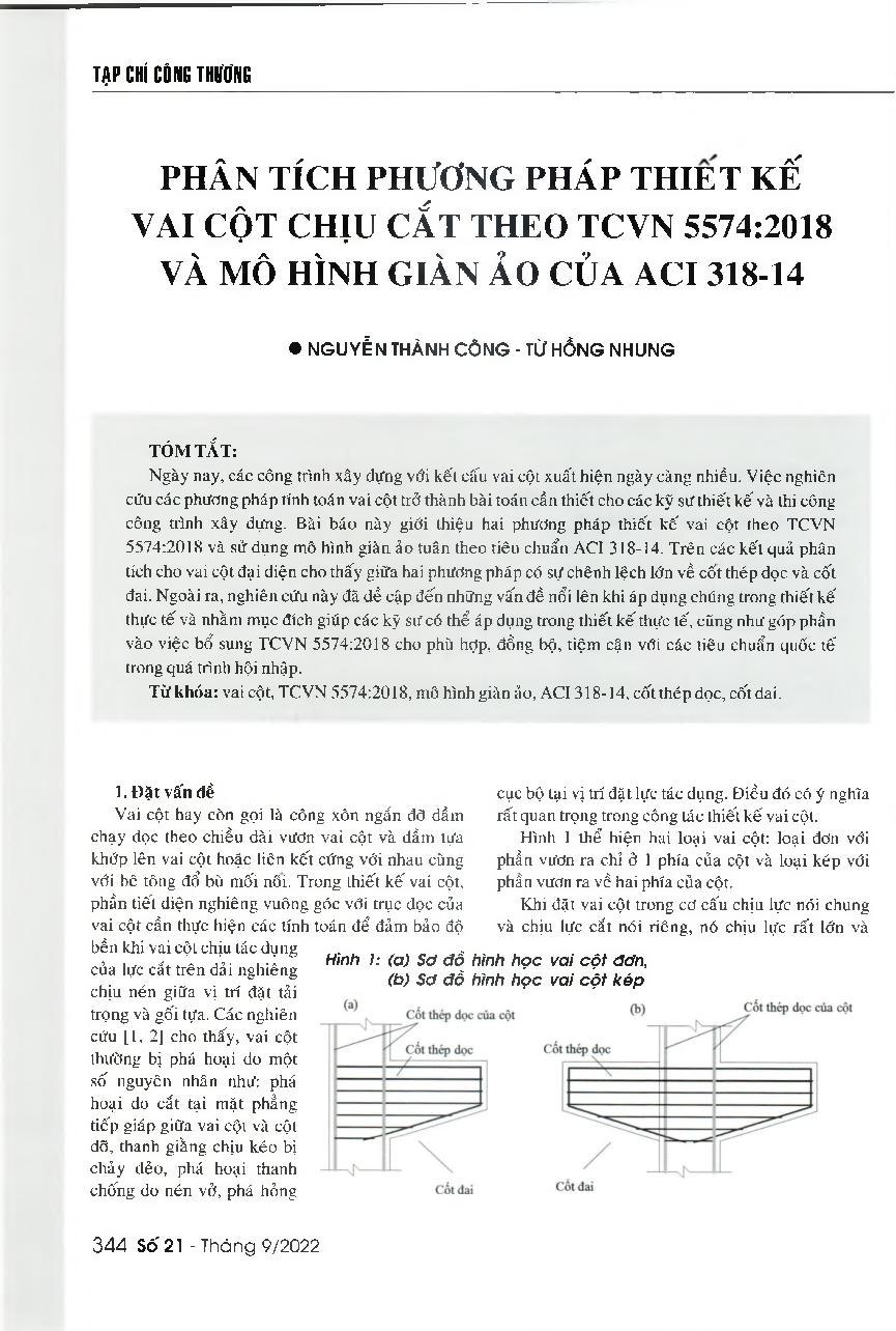 Phân tích phương pháp thiết kế vai cột chịu cắt theo TCVN 5574:2018 và mô hình giàn ảo của ACI 318-14 = Analyzing methods of designing corbel according to TCVN 5574:2018 and using strut and tie model in accordance to ACI 318-14