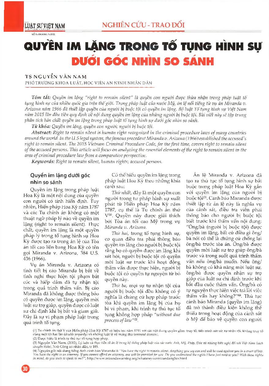 Quyền im lặng trong tố tụng hình sự dưới góc nhìn so sánh = Right to remain silent in criminal procedure from a comparative perspective