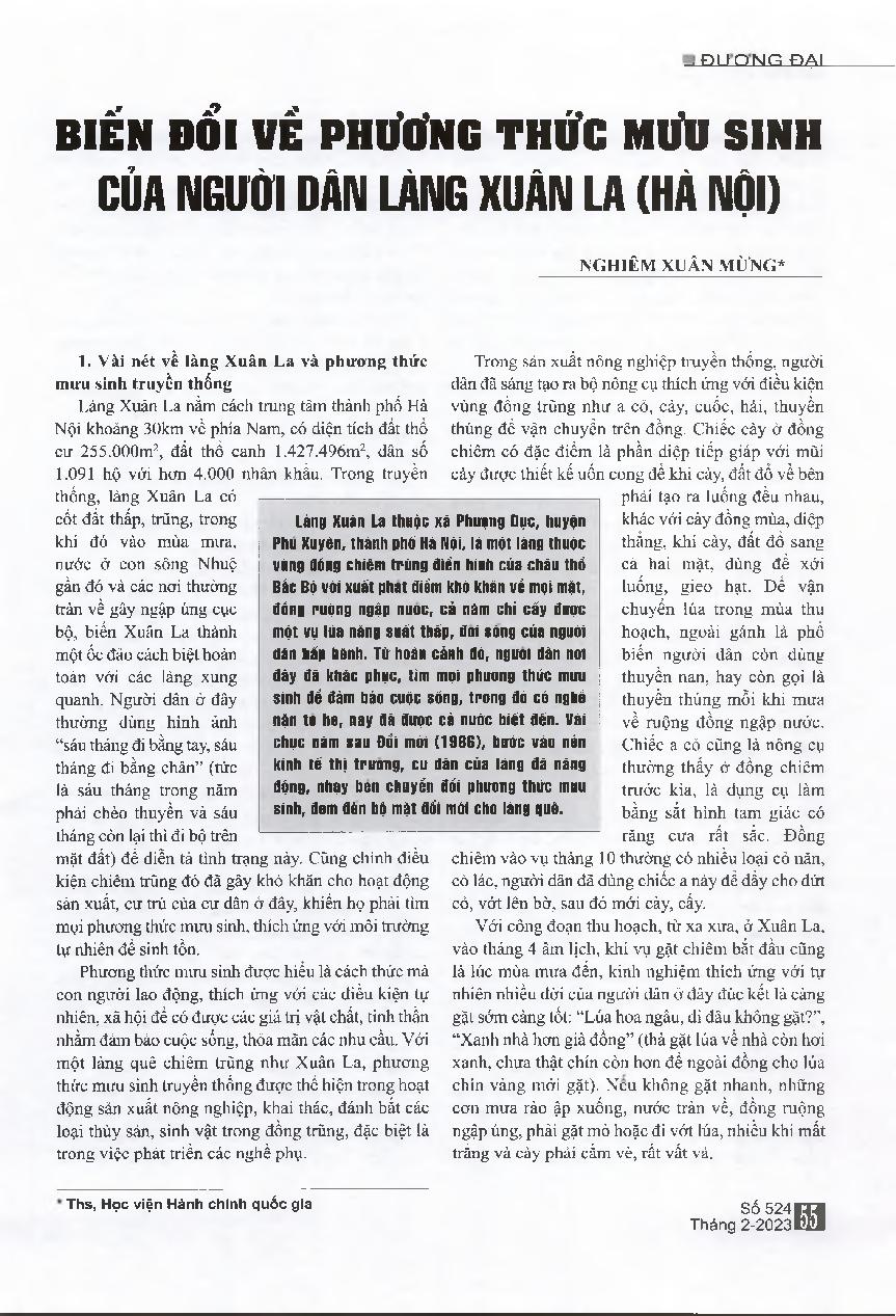 Biến đổi về phương thức mưu sinh của người dân làng Xuân La (Hà Nội)