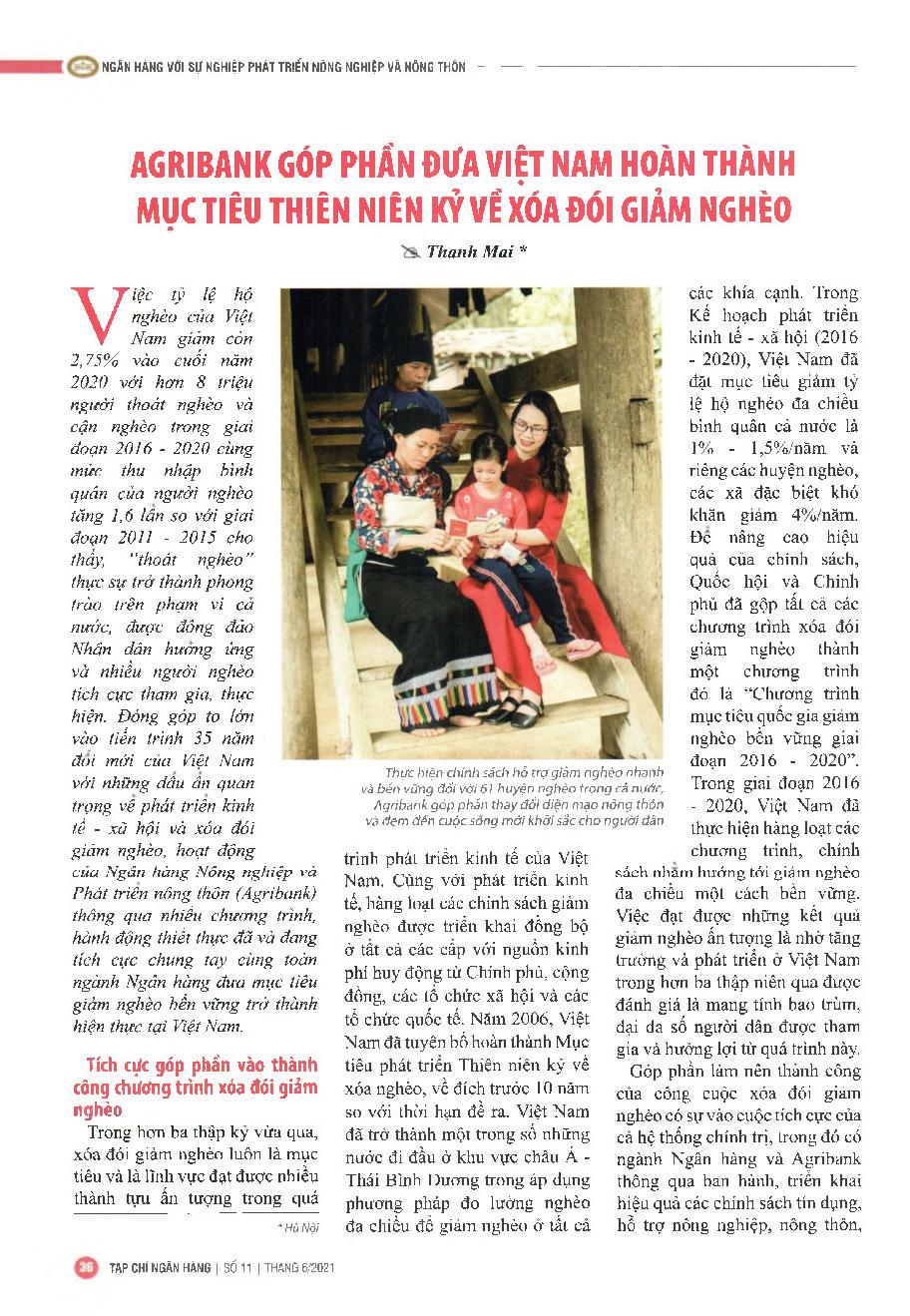 Agribank góp phần đưa Việt Nam hoàn thành mục tiêu thiên niên kỷ về xóa đói giảm nghèo
