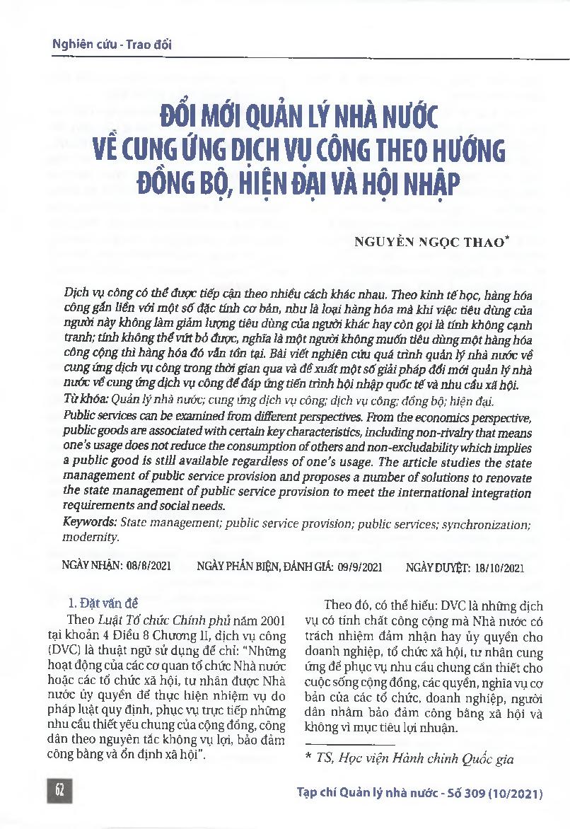 Đổi mới quản lý nhà nước về cung ứng dịch vụ công theo hướng đồng bộ, hiện đại và hội nhập