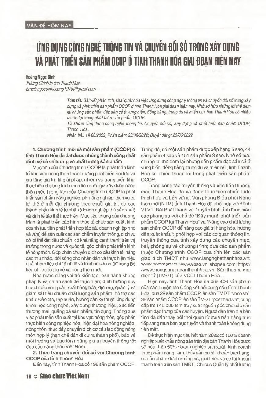 Ứng dụng công nghệ thông tin và chuyển đổi số trong xây dựng và phát triển sản phẩm OCOP ở tỉnh Thanh Hóa giai đoạn hiện nay