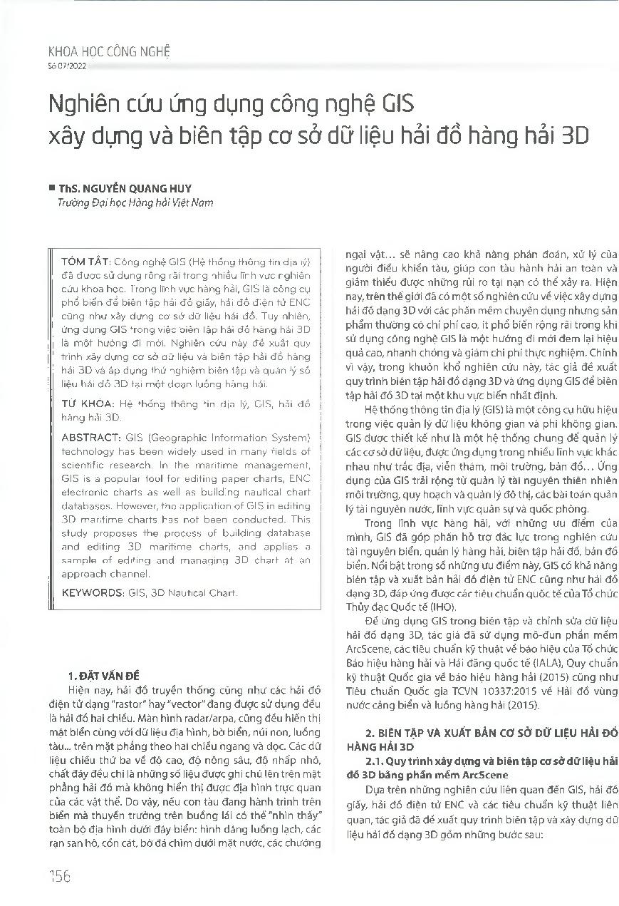 Nghiên cứu ứng dụng công nghệ GIS xây dựng và biên tập cơ sở dữ liệu hải đồ hàng hải 3D