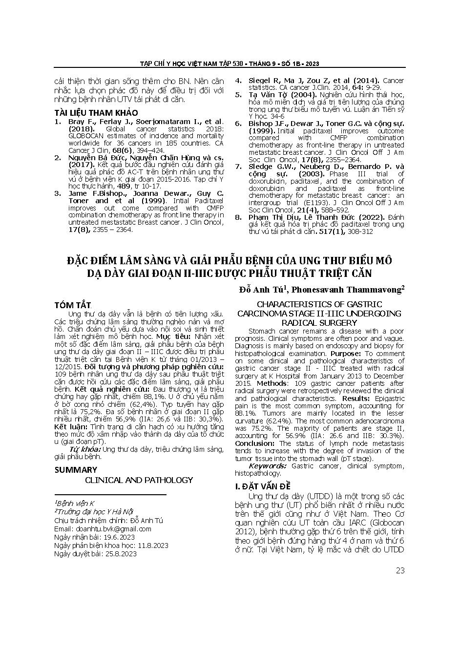 Đặc điểm lâm sàng và giải phẫu bệnh của ung thư biểu môdạdày giai đoạn II-IIIC được phẫu thuật triệt căn = Clinical and pathology characteristics of gastric carcinoma stage II-IIIC undergoing radical surgery