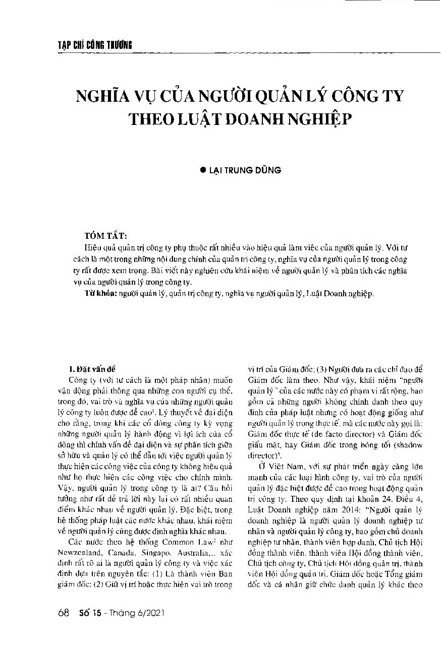 Nghĩa vụ của người quản lý công ty theo Luật Doanh nghiệp = Responsibilities of managers under the Law on Enterprises
