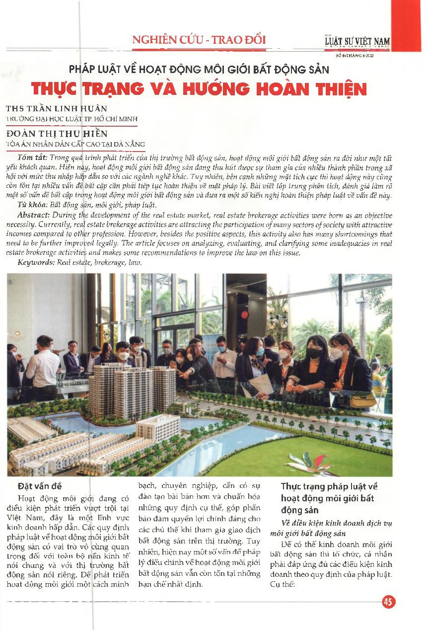 Pháp luật về hoạt động môi giới bất động sản: thực trạng và hướng hoàn thiện = The law on real estate brokerage activities: Current situation and directions for completing