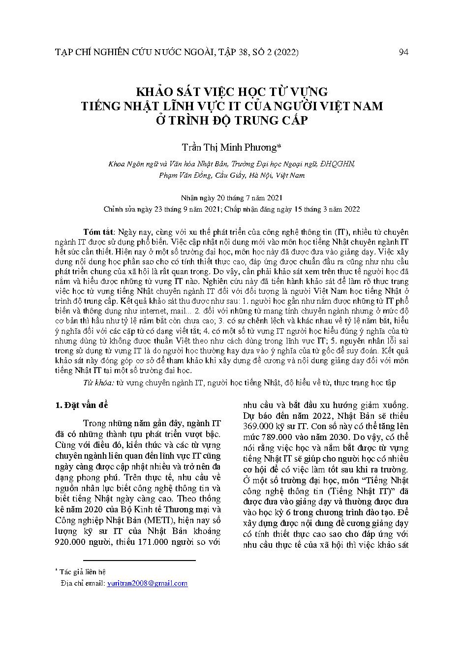 Khảo sát việc học từ vựng tiếng Nhật lĩnh vực it của người Việt Nam ở trình độ trung cấp