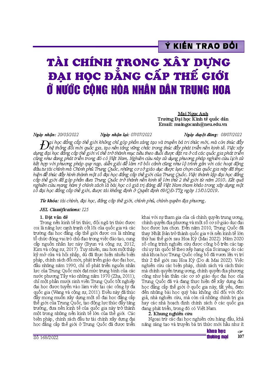 Tài chính trong xây dựng đại học đẳng cấp thế giới ở nước Cộng hòa nhân dân Trung Hoa