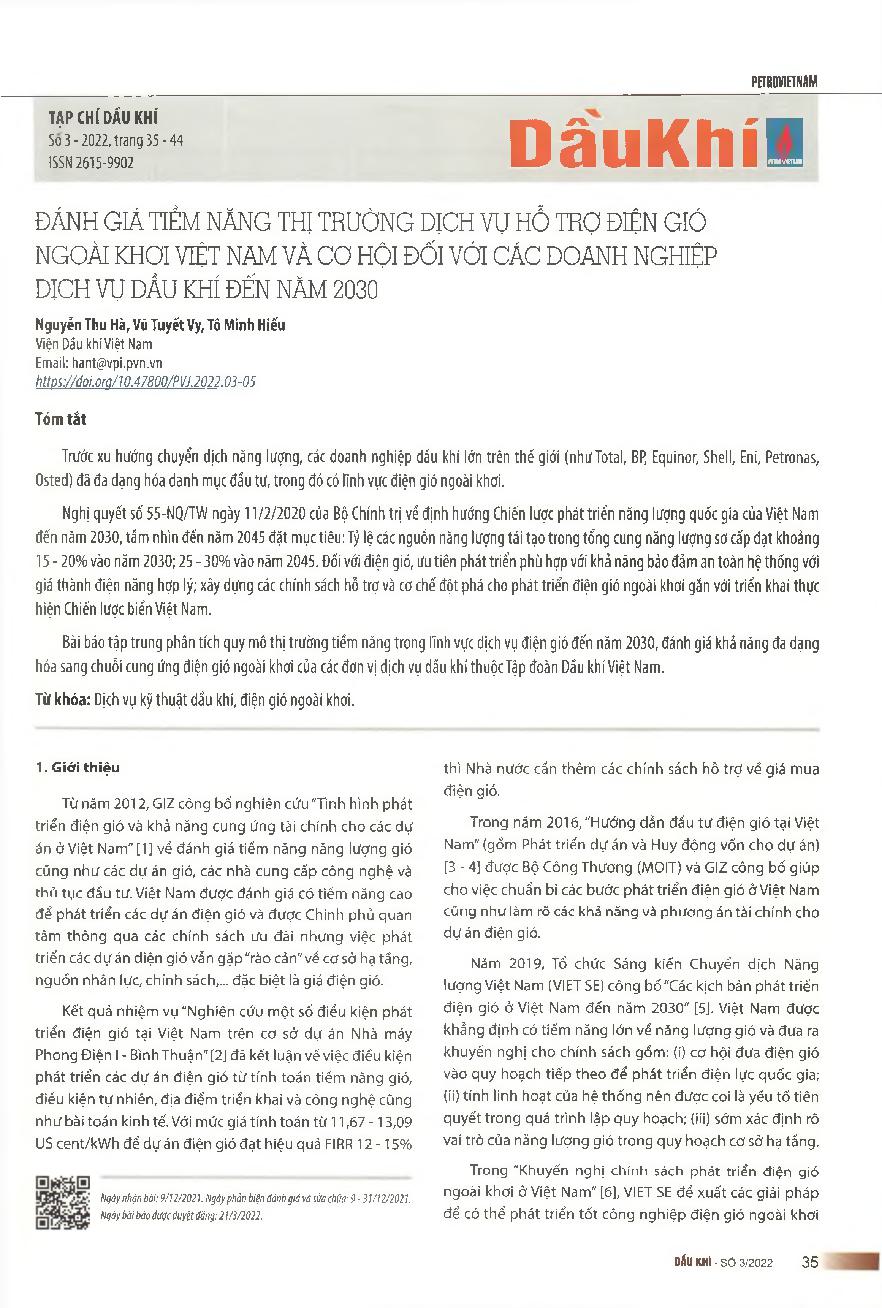 Đánh giá tiềm năng thị trường dịch vụ hỗ trợ điện gió ngoài khơi Việt Nam và cơ hội đối với các doanh nghiệp dịch vụ dầu khí đến năm 2030 = An assessment of the potential of offshore wind power services market and opportunities for oil and gas service com