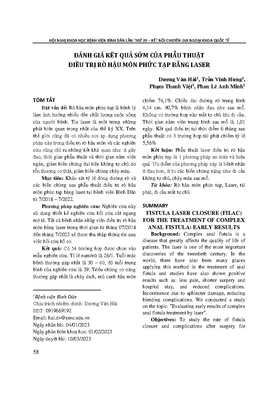 Đánh giá kết quả sớm của phẫu thuật điều trị rò hậu môn phức tạp bằng laser
