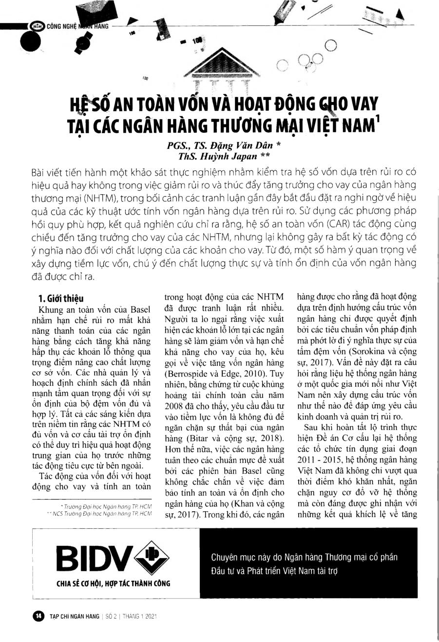 Hệ số an toàn vốn và hoạt động cho vay tại các ngân hàng thương mại Việt Nam