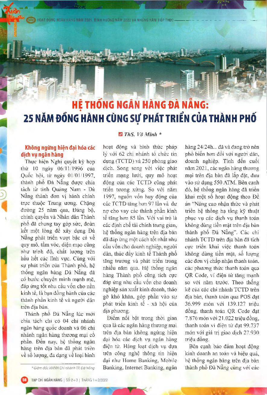Hệ thống ngân hàng Đà Nẵng: 25 năm đồng hành cùng sự phát triển của Thành phố = Da Nang banking system: 25 years accompanying the development of the city