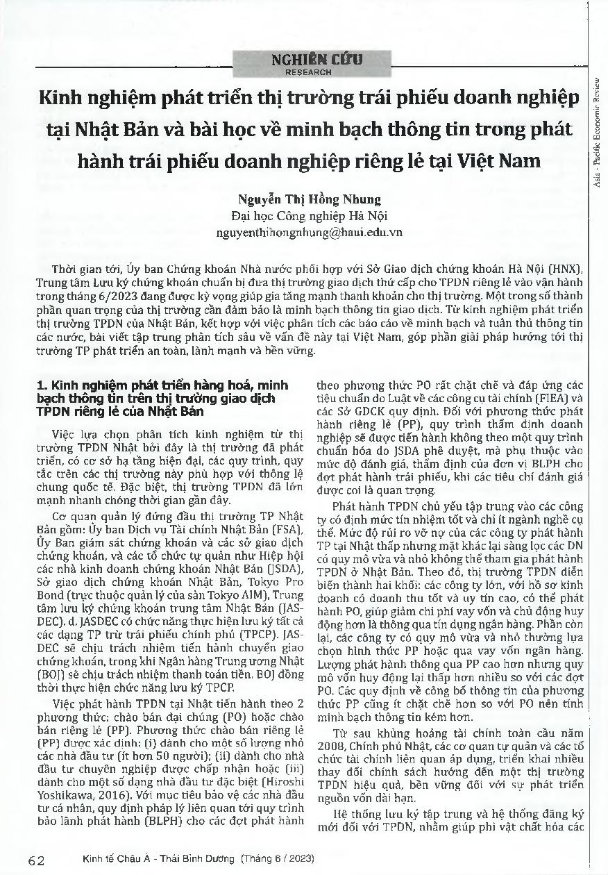 Kinh nghiệm phát triển thị trường trái phiếu doanh nghiệp tại Nhật Bản và bài học về minh bạch thông tin trong phát hành trái phiếu doanh nghiệp riêng lẻ tại Việt Nam