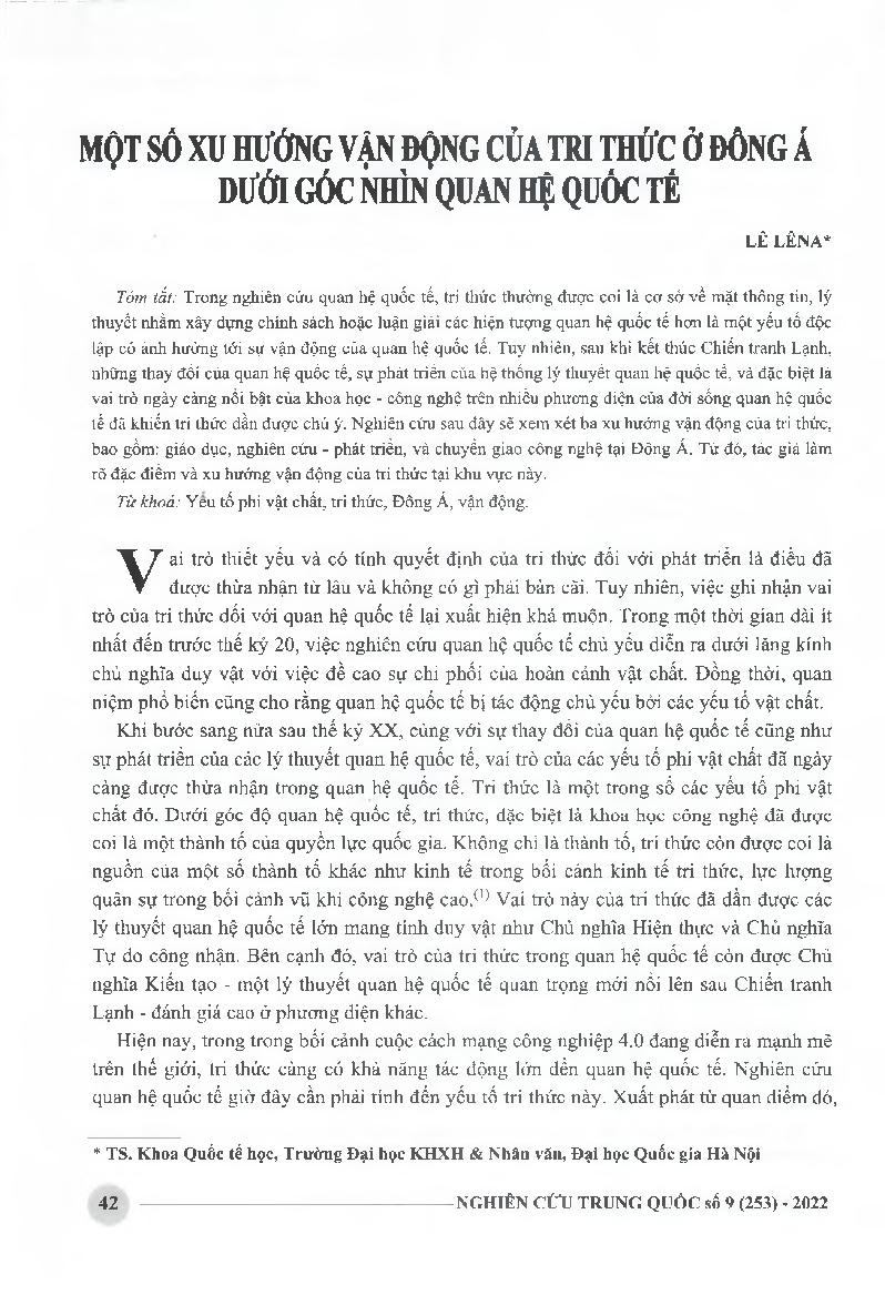 Một số xu hướng vận động của tri thức ở Đông Á dưới góc nhìn quan hệ quốc tế = Some trends of knowledge movement in East Asia from the perspective of international relations