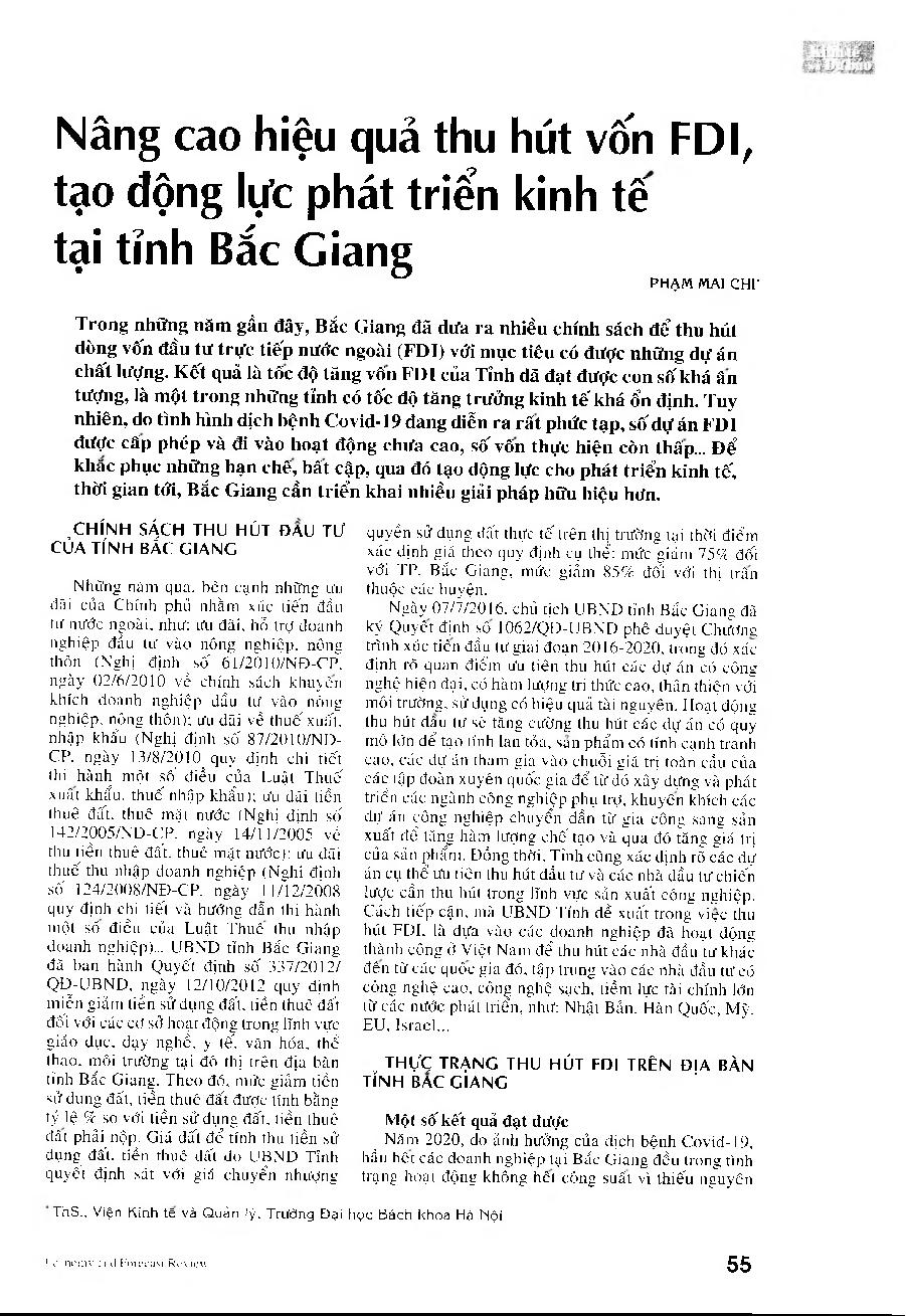 Nâng cao hiệu quả thu hút vốn FDI, tạo động lực phát triển kinh tế tại tỉnh Bắc Giang