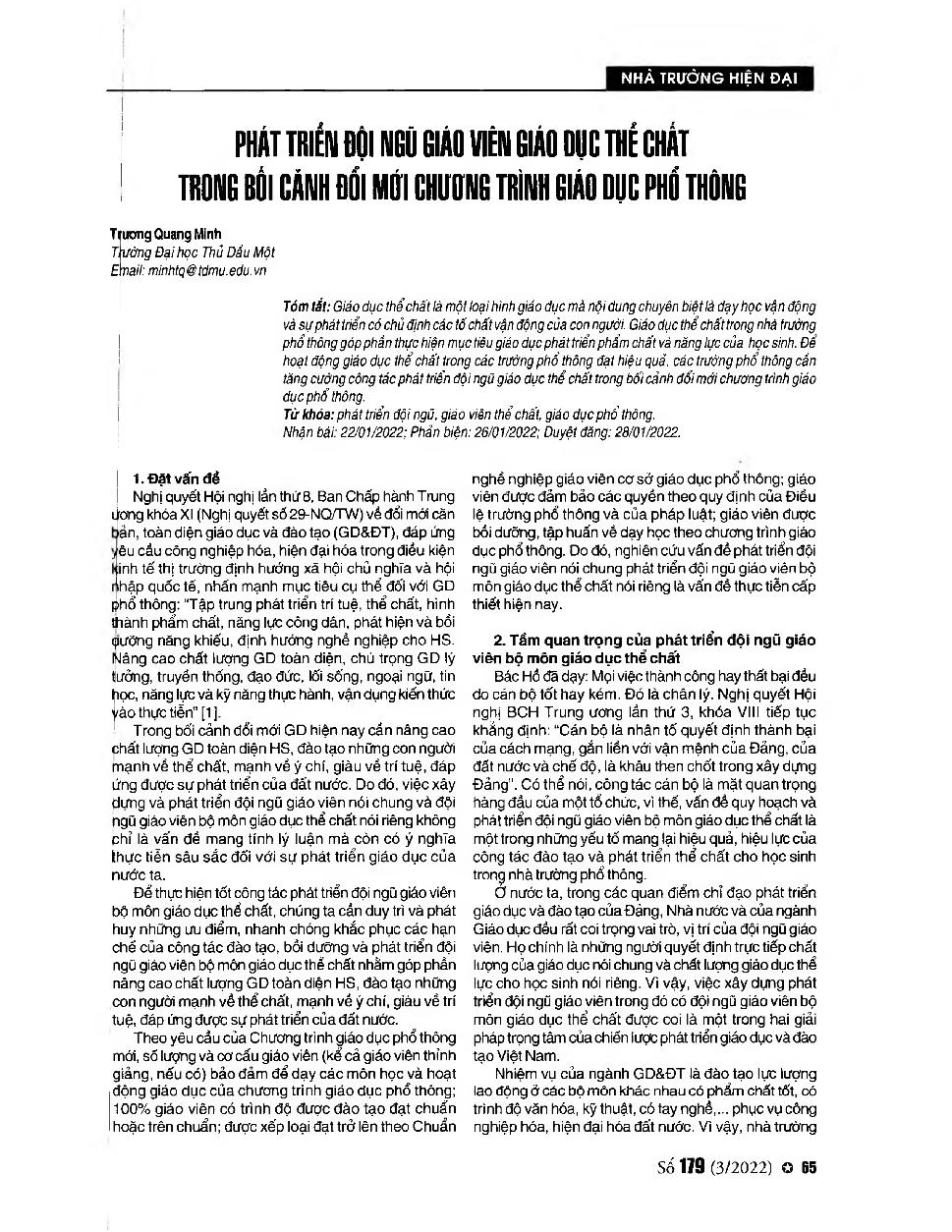 Phát triển đội ngũ giáo viên giáo dục thể chất trong bối cảnh đổi mới chương trình giáo dục phổ thông = Developing the contingent of physical education teachers in the context ol reforming the general education curriculum