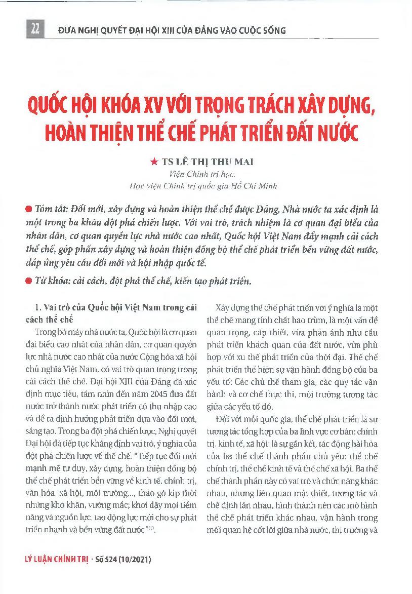 Quốc hội khóa XV với trọng trách xây dựng, hoàn thiện thể chế phất triển đất nước