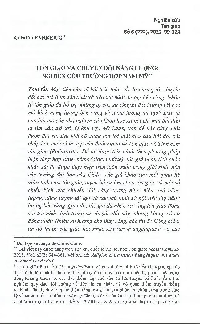 Tôn giáo và chuyển đổi năng lượng: Nghiên cứu trường hợp Nam Mỹ = Religion and Energy Transition: A South American Case Study**