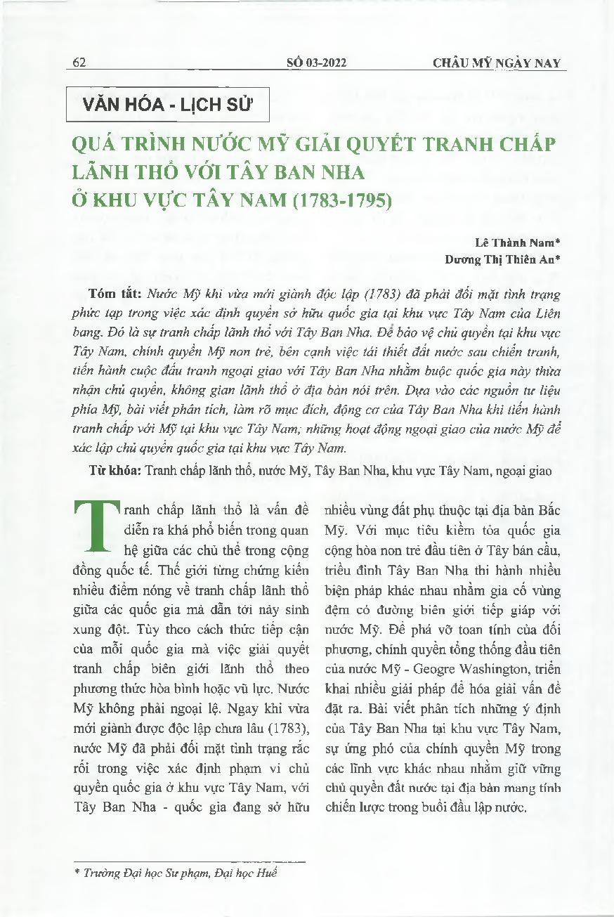 Quá trình nước Mỹ giải quyết tranh chấp lãnh thổ với Tây Ban Nha ở khu vực Tây Nam (1783-1795)