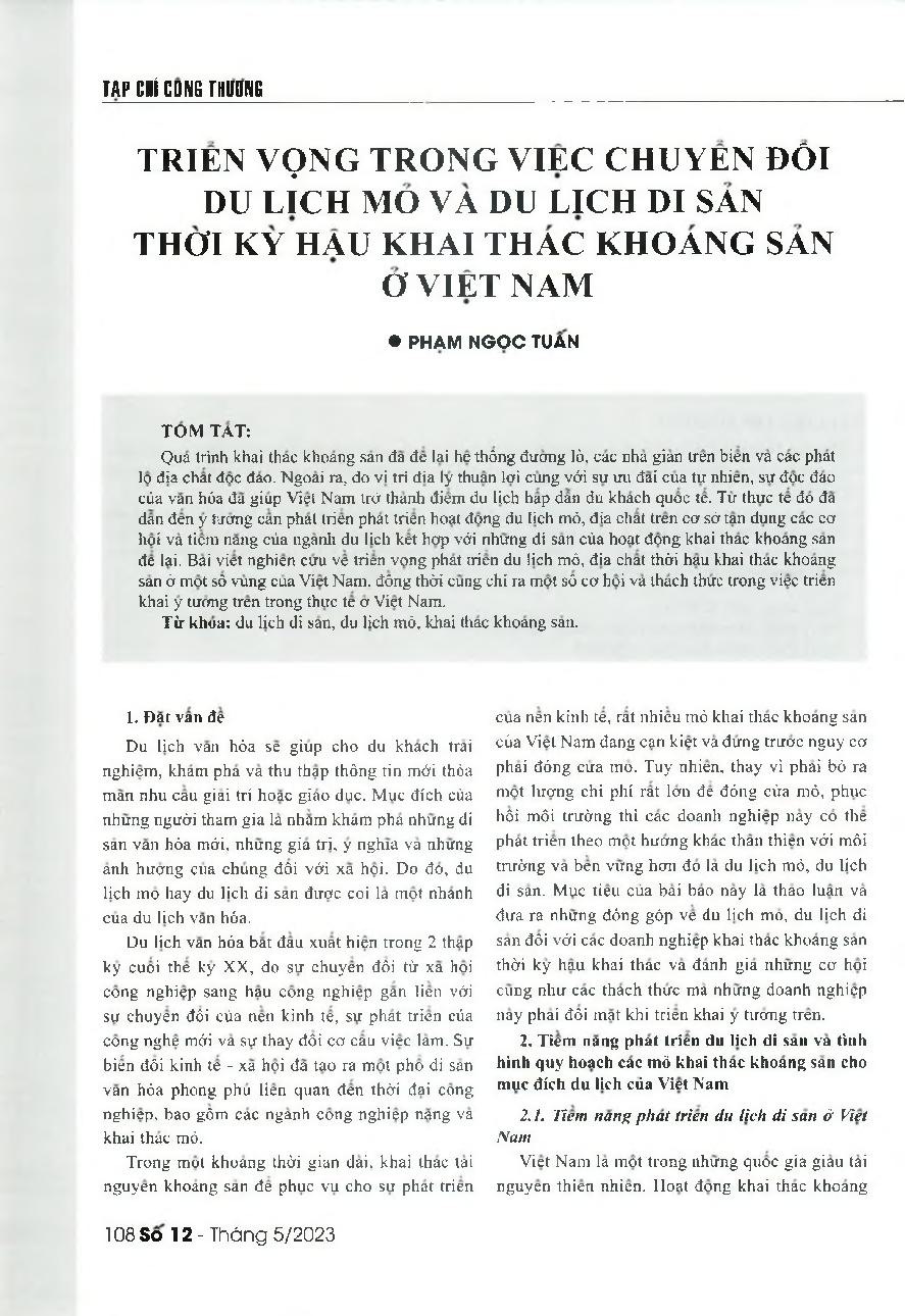 Triển vọng trong việc chuyển đổi du lịch mỏ và du lịch di sản thời kỳ hậu khai thác khoáng sản ở Việt Nam