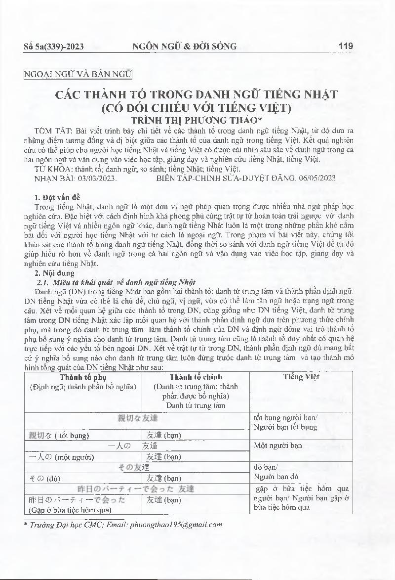 Các thành tố trong danh ngữ tiếng Nhật (có đối chiếu với tiếng Việt) = Components of noun phrases in Japanese (in comparation with Vietnamese)