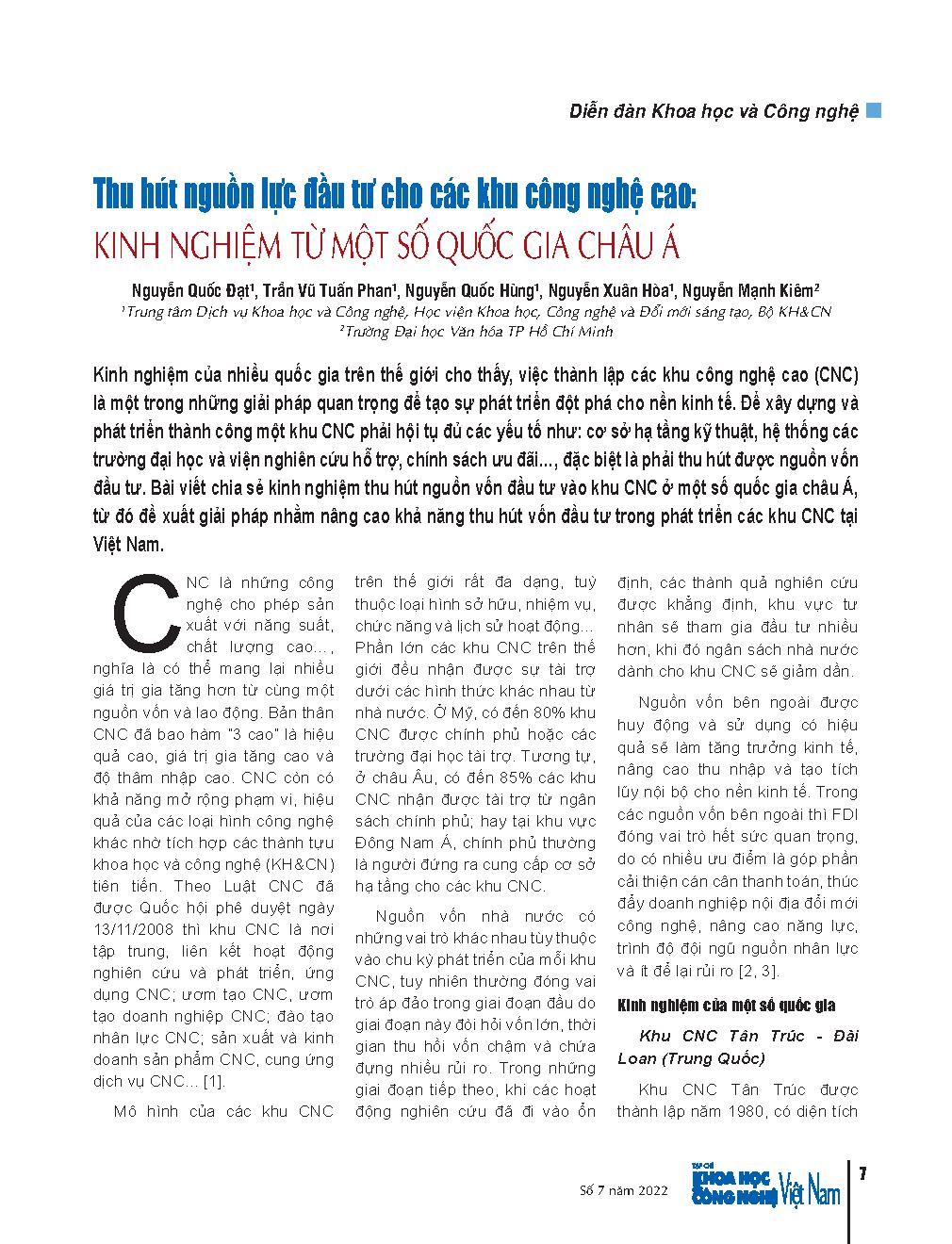 Thu hút nguồn lực đầu tư cho các khu công nghệ cao: Kinh nghiệm từ một số quốc gia châu Á = Attracting investment resources for high-tech parks: Experiences from some Asian countries