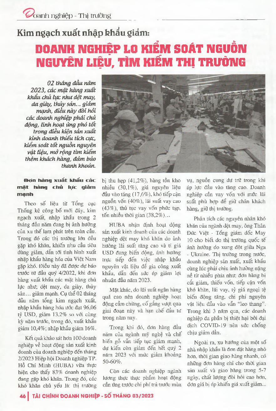 Kim ngạch xuất khẩu giảm: Doanh nghiệp lo kiểm soát nguồn nguyên, tìm kiếm thị trường = Export turnover decreases: Businesses worry about controlling raw materials and finding markets