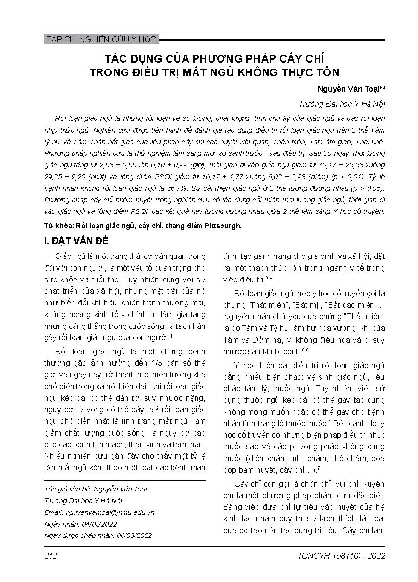 Tác dụng của phương pháp cấy chỉ trong điều trị mất ngủ không thực tổn