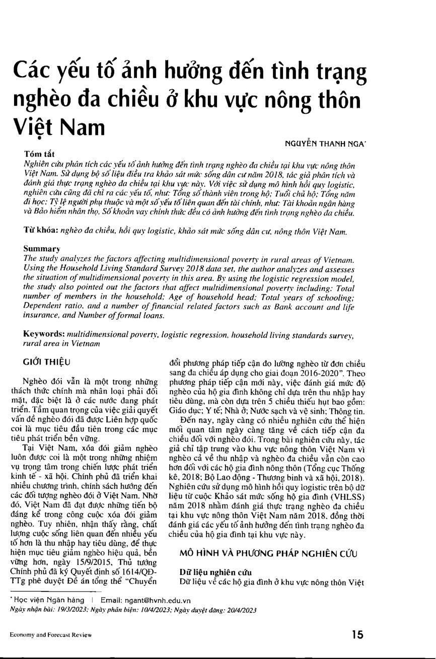 Các yếu tố ảnh hưởng đến tình trạng nghèo đa chiều tại khu vực nông thôn Việt Nam