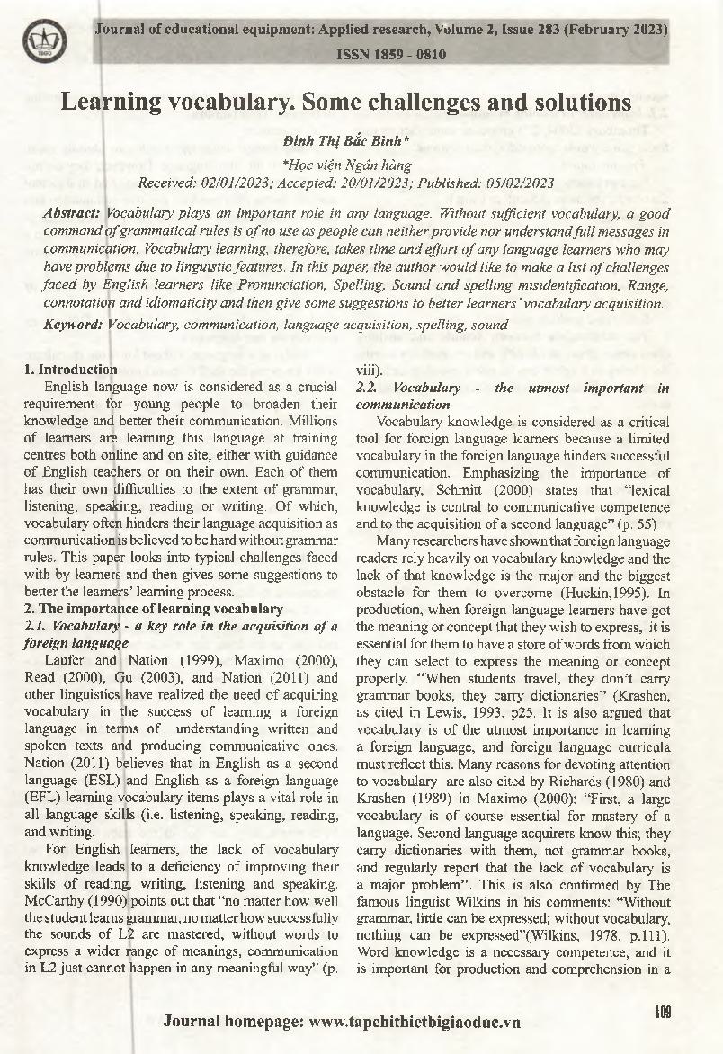 Học từ vựng. Một số thách thức và giải pháp = Learning vocabulary. Some challenges and solutions