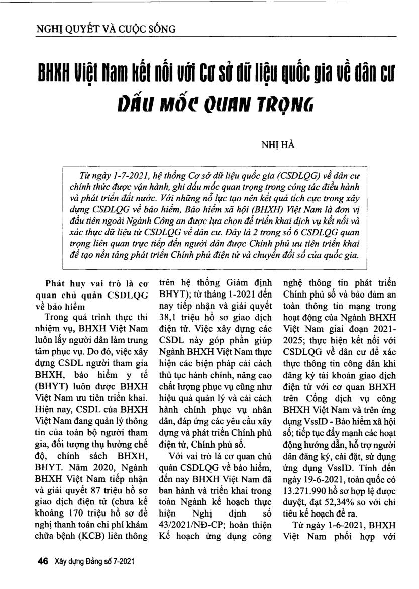 Bảo hiểm xã hội Việt Nam kết nối với cơ sở dữ liệu quốc gia về dân cư dấu mốc quan trọng