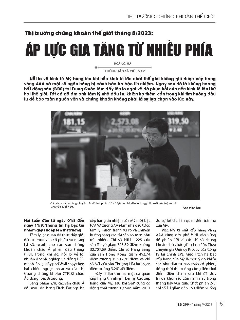 Thị trường chứng khoán thế giới tháng 8/2023: Áp lực gia tăng từ nhiều phía