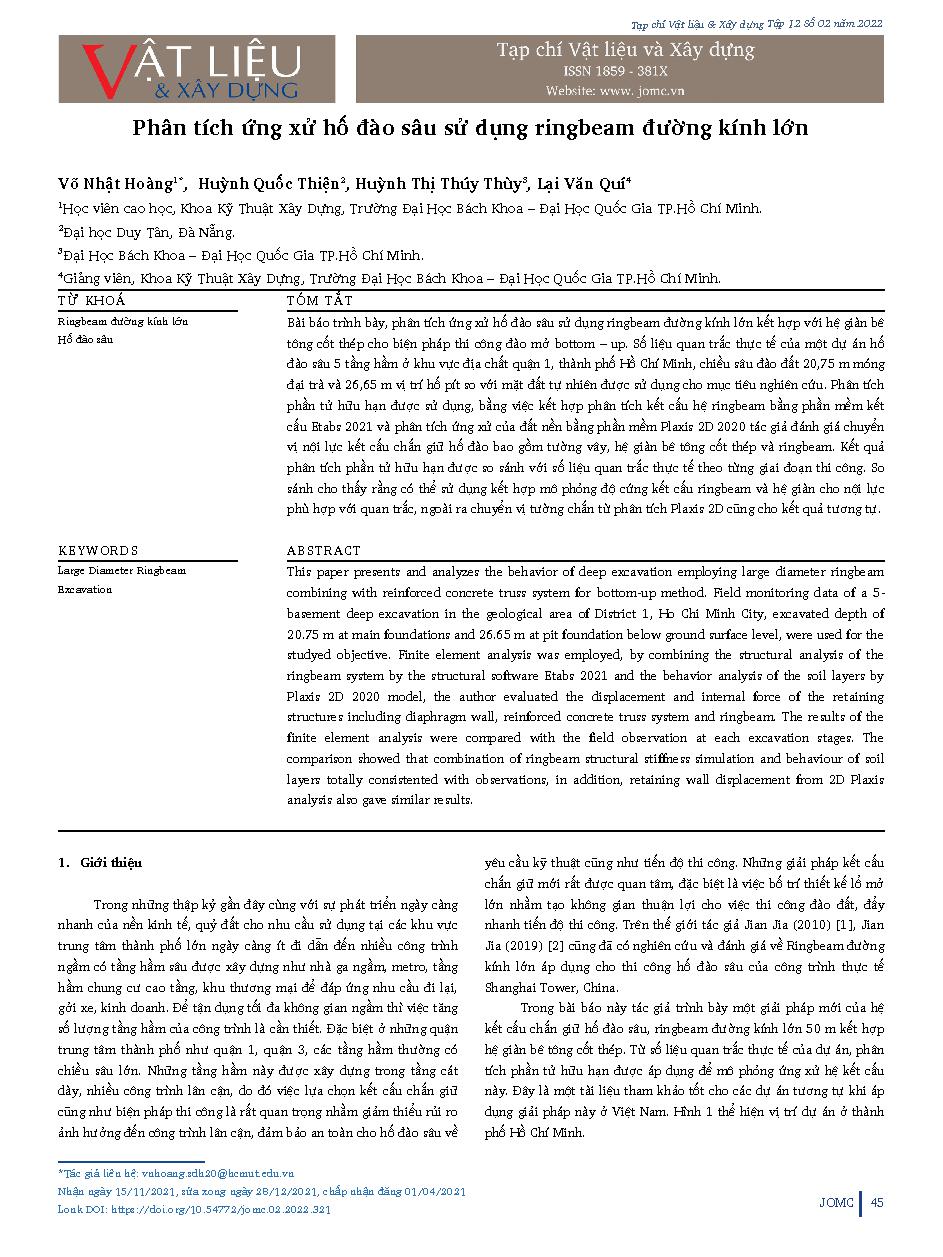 Phân tích ứng xử hố đào sâu sử dụng ringbeam đường kính lớn