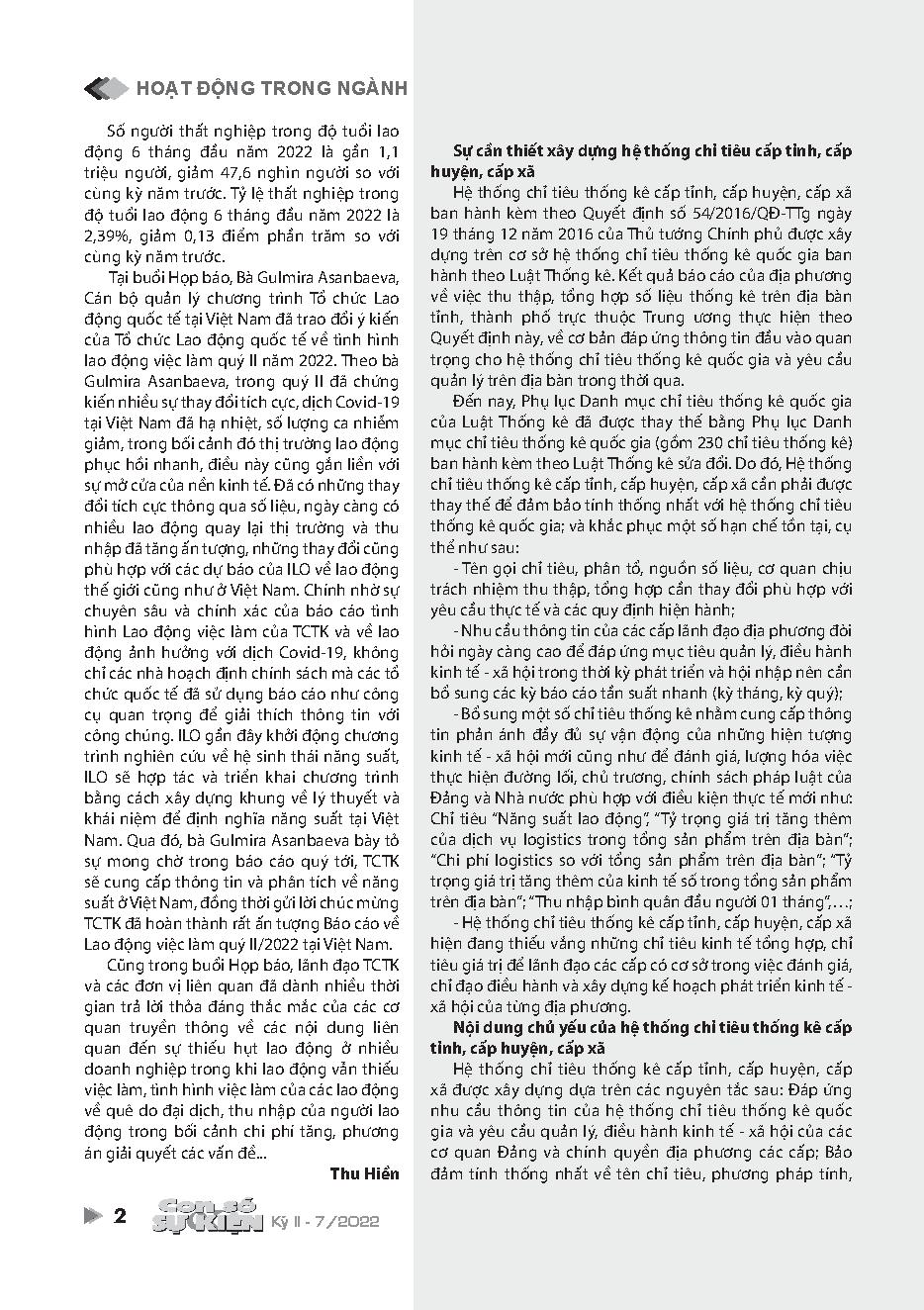 Xây dựng hệ thống chỉ tiêu thống kê cấp tỉnh, cấp huyện, cấp xã theo Luật Thống kê sửa đổi = Building a system of statistical indicators at provincial, district and commune levels according to the revised Law on Statistics