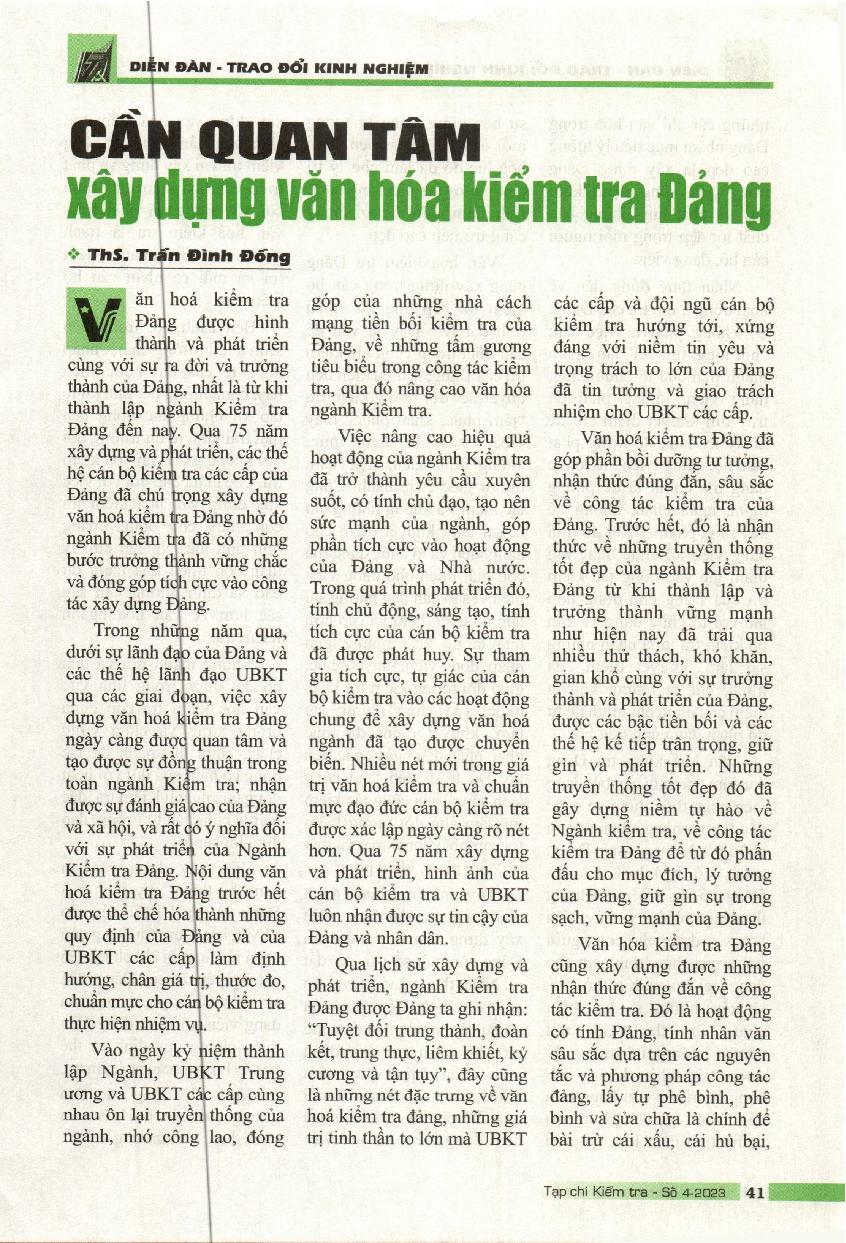 Cần quan tâm xây dựng văn hóa kiểm tra Đảng