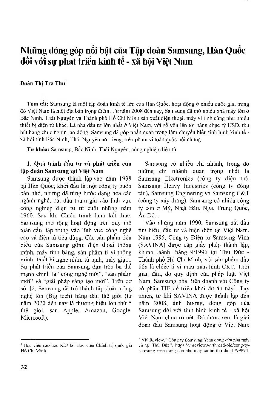 Những đóng góp nổi bật của Tập đoàn Samsung, Hàn Quốc đối với sự phát triển kinh tế - xã hội Việt Nam = Outstanding Contributions of SAMSUNG (Korea) for the Socio-Economic Development of Vietnam