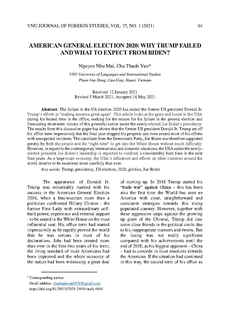 Bầu cử tổng thống mỹ 2020: vì sao Trump thất bại và chúng ta có thể mong chờ điều gì từ Biden?