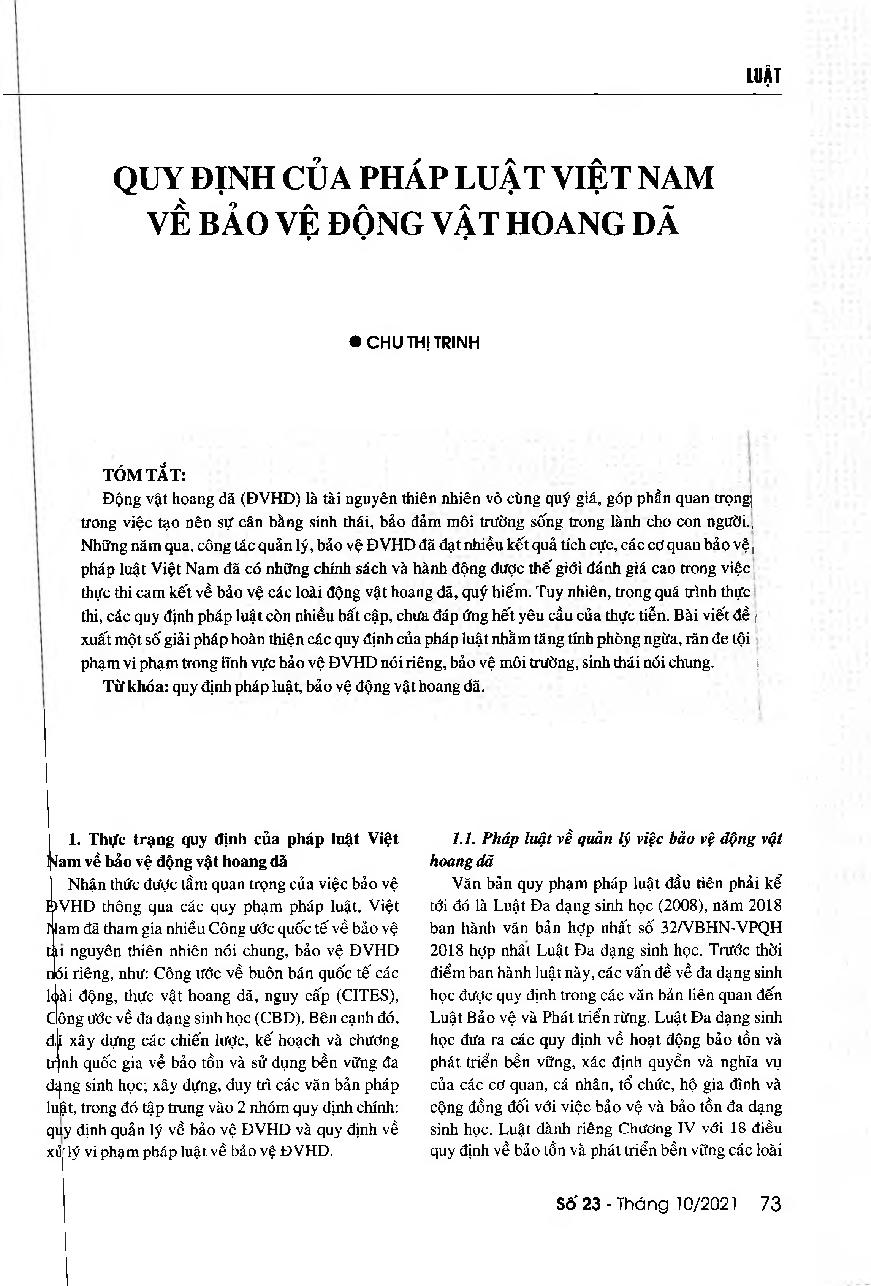 Quy định của pháp luật Việt Nam về bảo vệ động vật hoang dã = Vietnam's regulations on wild animals protection