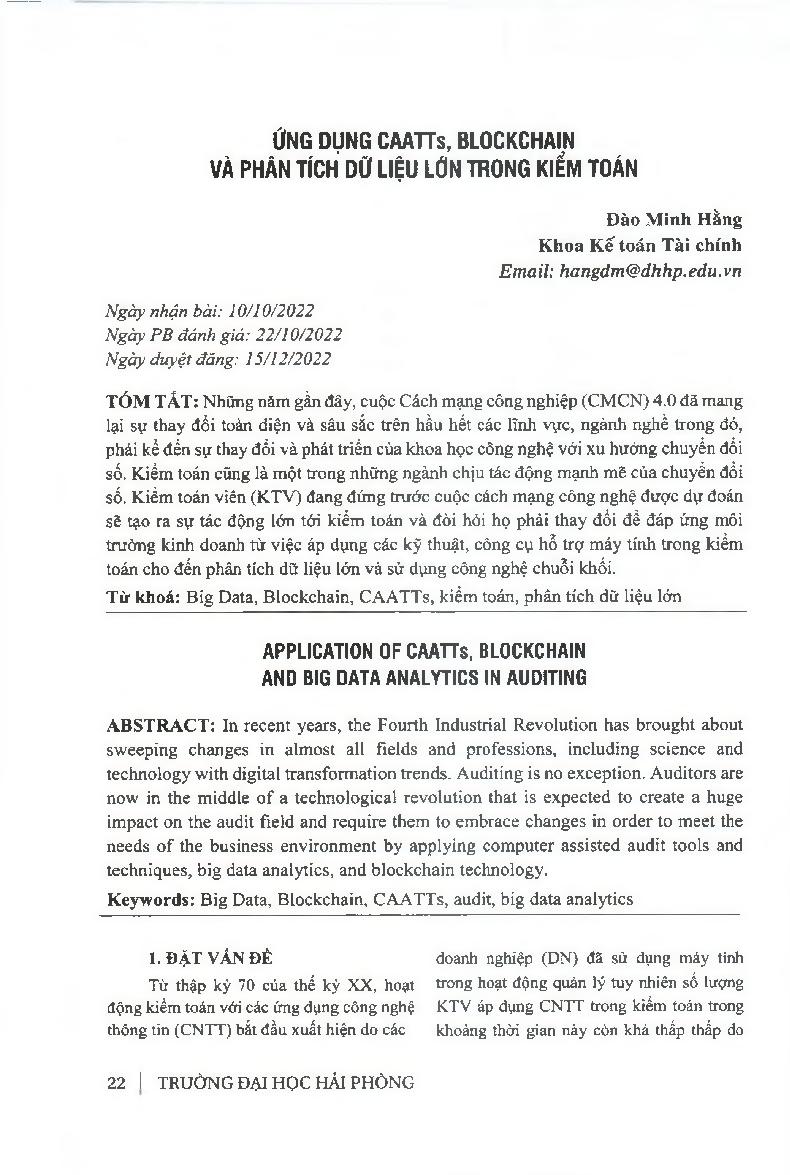 Ứng dụng Caatts, Blockchain và phân tích dữ liệu lớn trong kiểm toán = Application Of Caatts, Blockchain And Big Data Analytics In Auditing