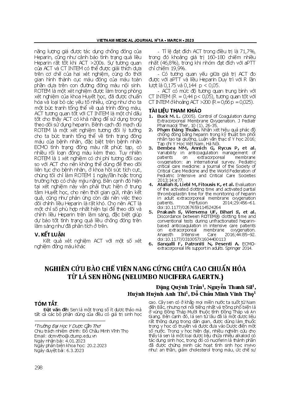 Nghiên cứu bào chế viên nang cứng chứa cao chuẩn hóa từ lá sen hồng (Nelumbo nucifera Gaertn.) = Preparation of capsule containing standardized extraction from leaves of lotus (Nelumbo nucifera Gaertn.)
