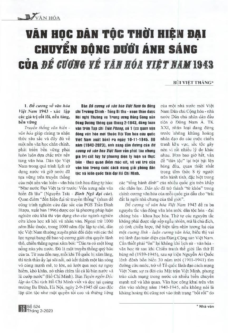 Văn học dân tộc thời hiện đại chuyển động dưới ánh sáng của đề cương văn hóa Việt Nam 1943