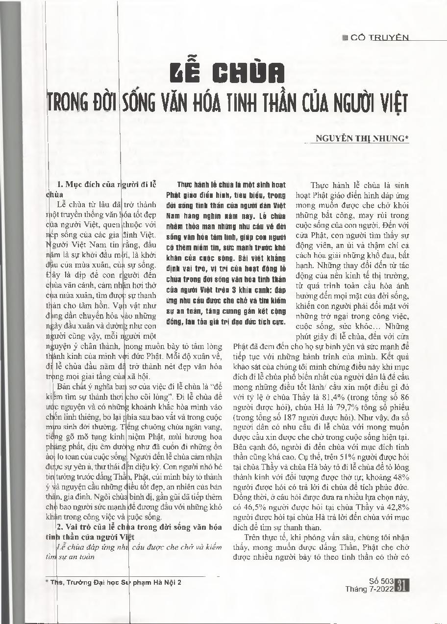 Lễ chùa trong đời sống văn hóa tinh thần của người Việt = Temple ceremony in the cultural and spiritual life of Vietnamese people