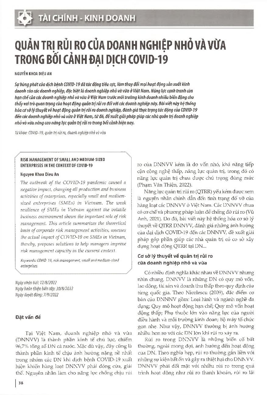 Quản trị rủi ro của doanh nghiệp nhỏ và vừa trong bối cảnh đại dịch COVID-19 = Risk management of small and medium-sized enterprises in the context of COVID-19