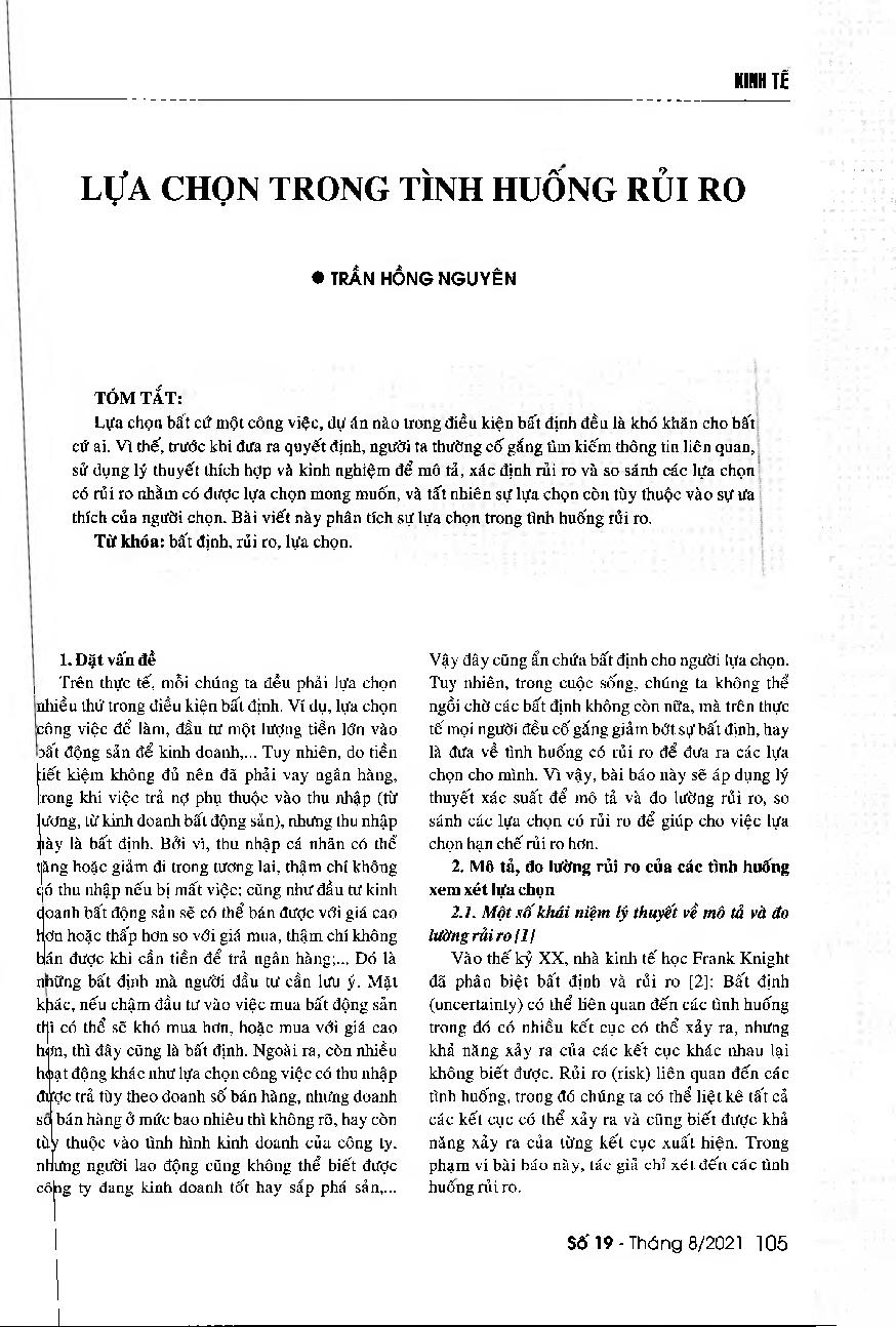 Lựa chọn trong tình huống rủi ro = Choice in risky situation