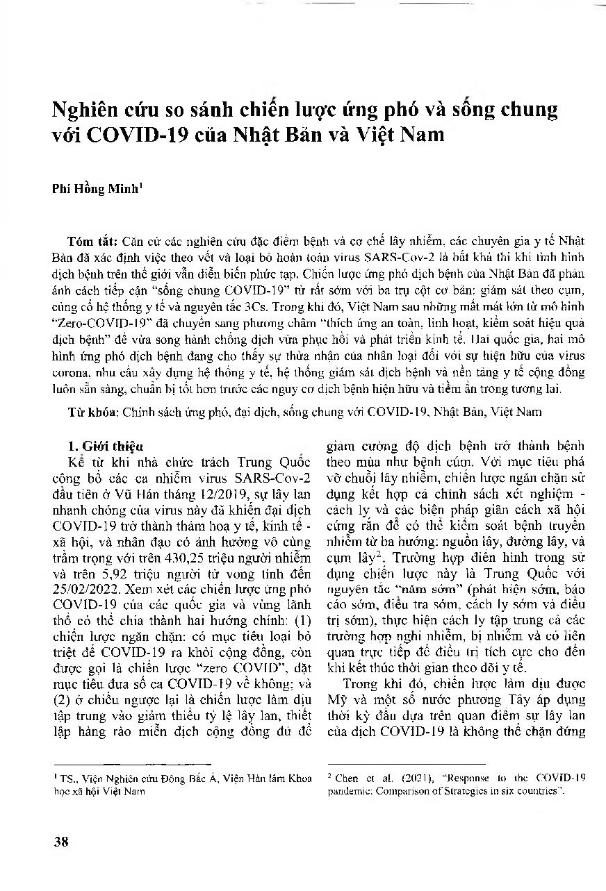 Nghiên cứu so sánh chiến lược ứng phó và sống chung với COVID-19 của Nhật Bản và Việt Nam = A Comparative Study of Response Strategies for Living Safely with COVID-19 in Japan and Vietnam