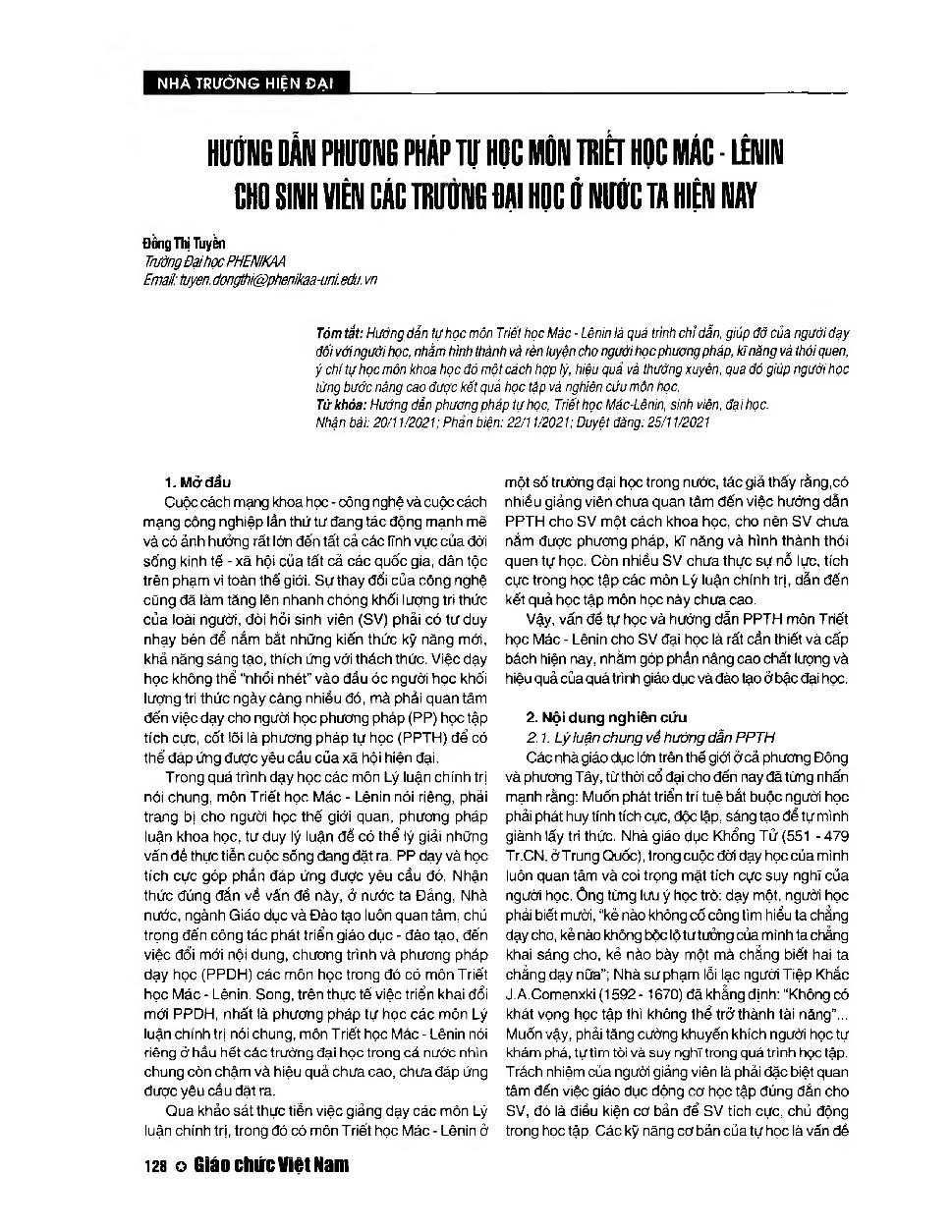 Hướng dẫn phương pháp tự học môn triết học Mác - Lênin cho sinh viên các trường đại học ở nước ta hiện nay = Guidance for self-study method on Marxist-Leninist philosophy for university students in our country today